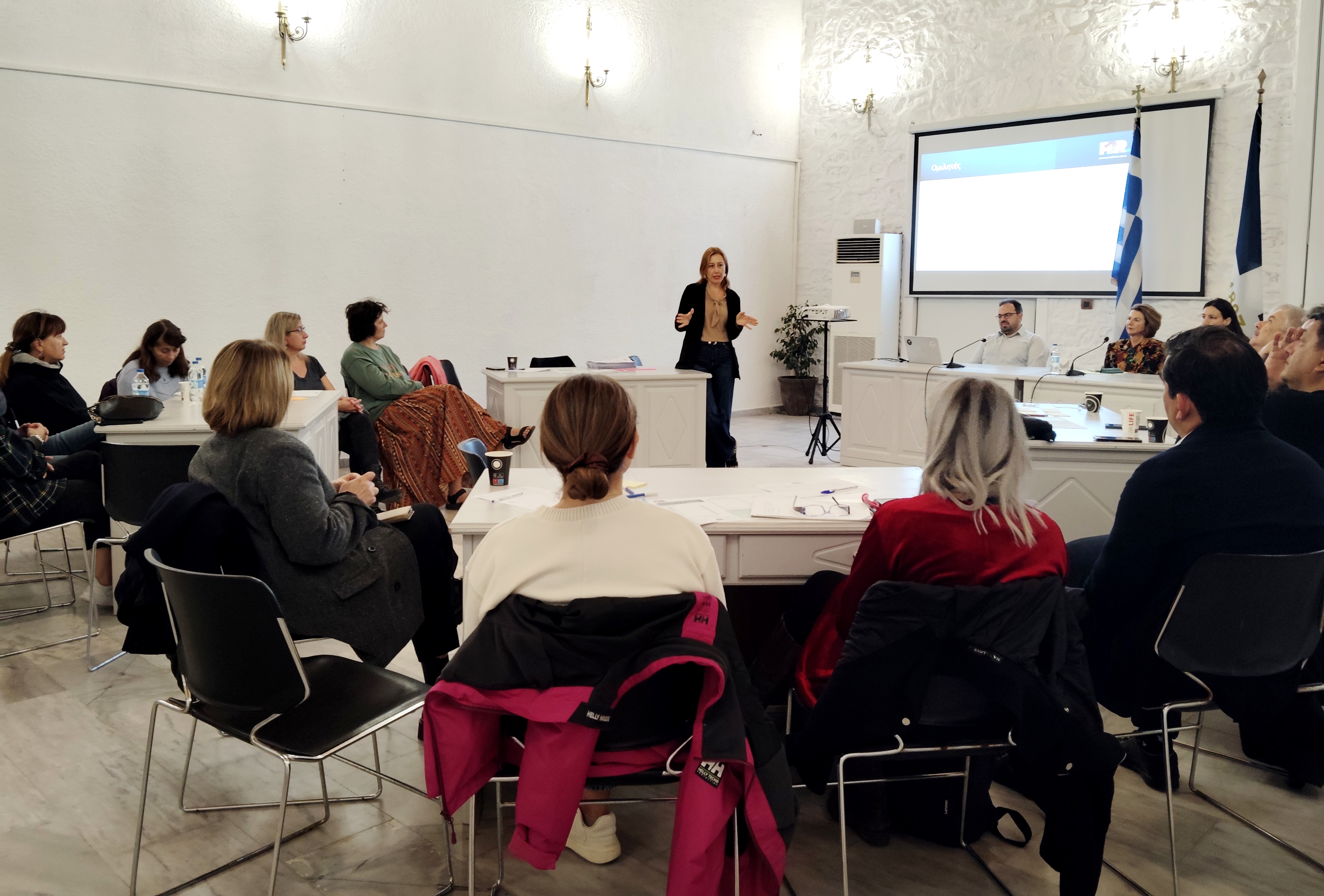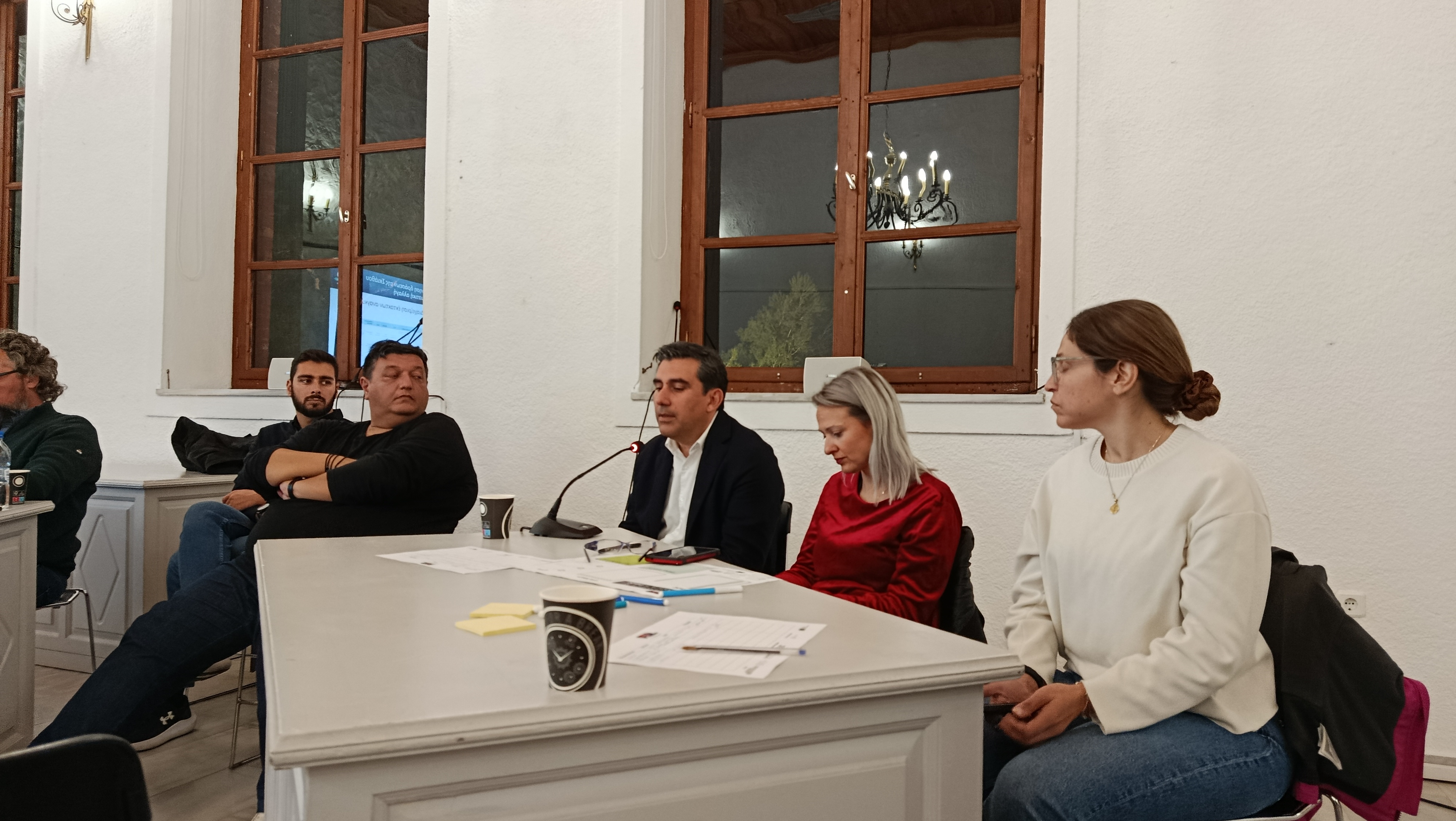Στη συνέχεια ακολούθησε παρουσίαση των αποτελεσμάτων του πρώτου εργαστηρίου που έλαβε χώρα στις 17 Φεβρουαρίου 2025, από τους Κωνσταντίνα Καρύδη, Διευθύνουσα Σύμβουλο Resilient Cities Catalyst Europe & Αντιπρόεδρο Κόμβου Κλιματικής Αλλαγής και Αναστάσιο Βαλβη, Project Manager στη Δ/νση Στρατηγικής και Καινοτομίας της Ε.ΥΔ.Α.Π. Α.Ε.. Κατά το πρώτο εργαστήριο οι συμμετέχοντες φορείς και πολίτες της Σκιάθου ιεράρχησαν τις σημαντικότερες για αυτούς κρίσεις και πιέσεις που δέχεται το νησί. Αναφερόμενος στην ενδελεχή χαρτογράφηση των δράσεων του Δήμου για την αντιμετώπιση της κλιματικής αλλαγής, που παρουσιάζονται στην πλατφόρμα cchub.eu , ο Δήμαρχος παρουσίασε εν συντομία τις κυριότερες παρεμβάσεις που υλοποιούνται στο νησί.