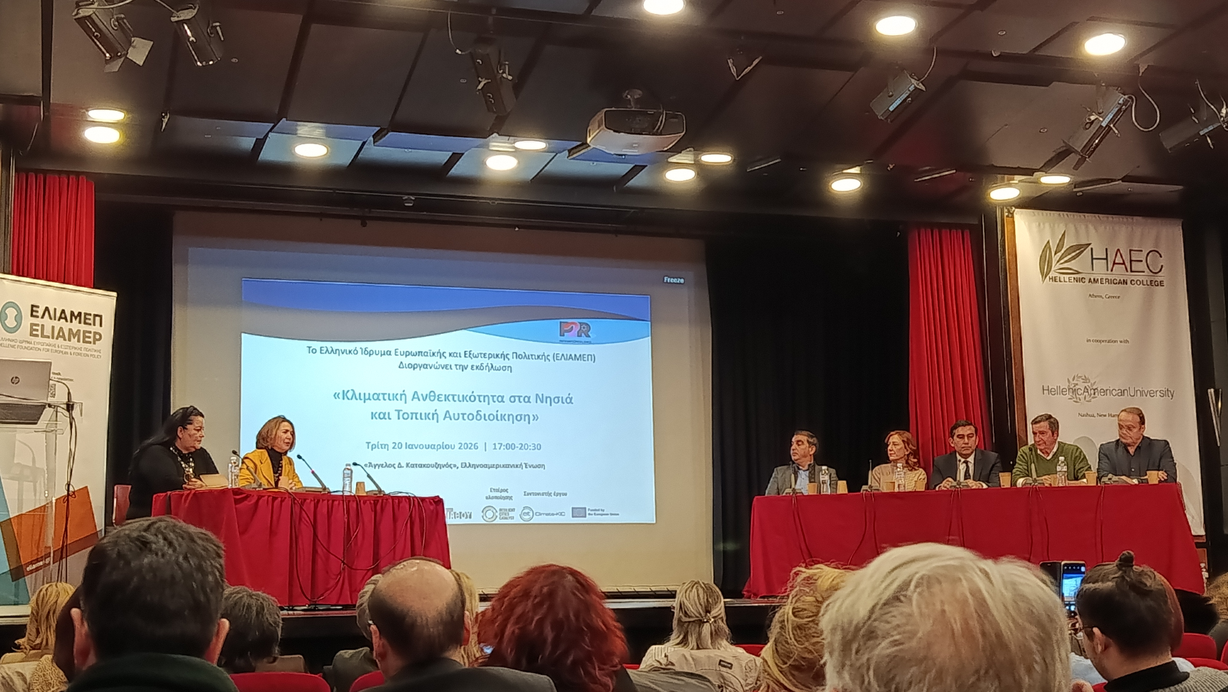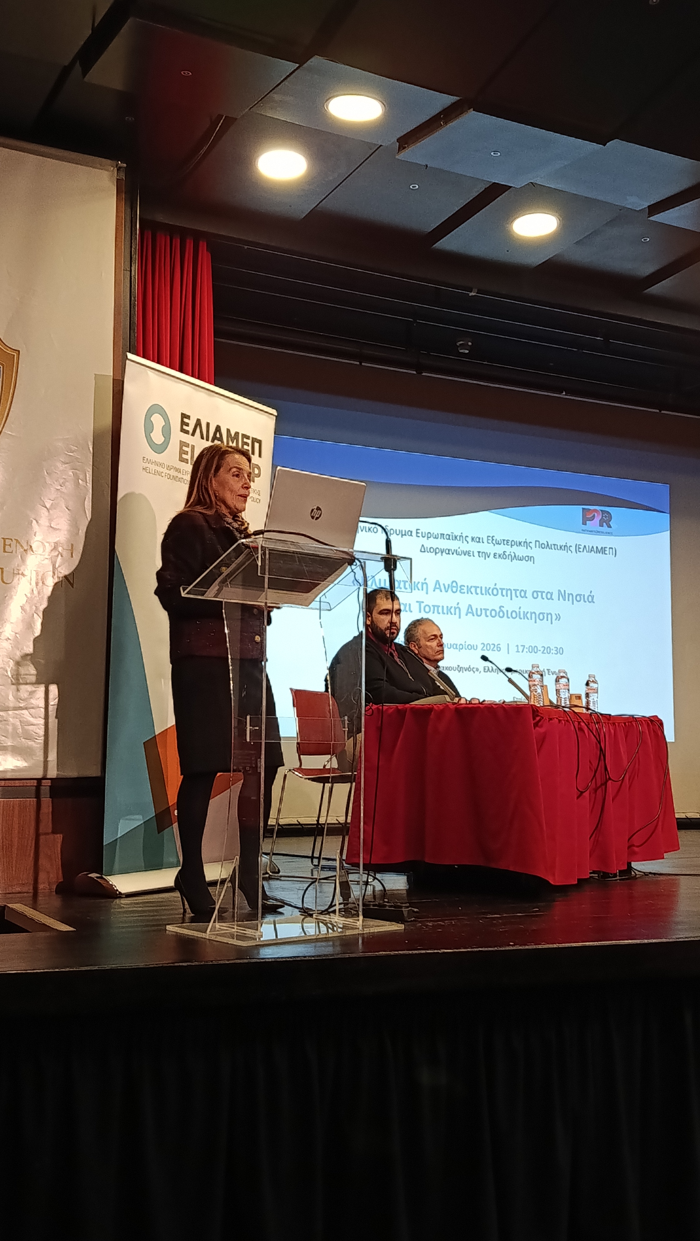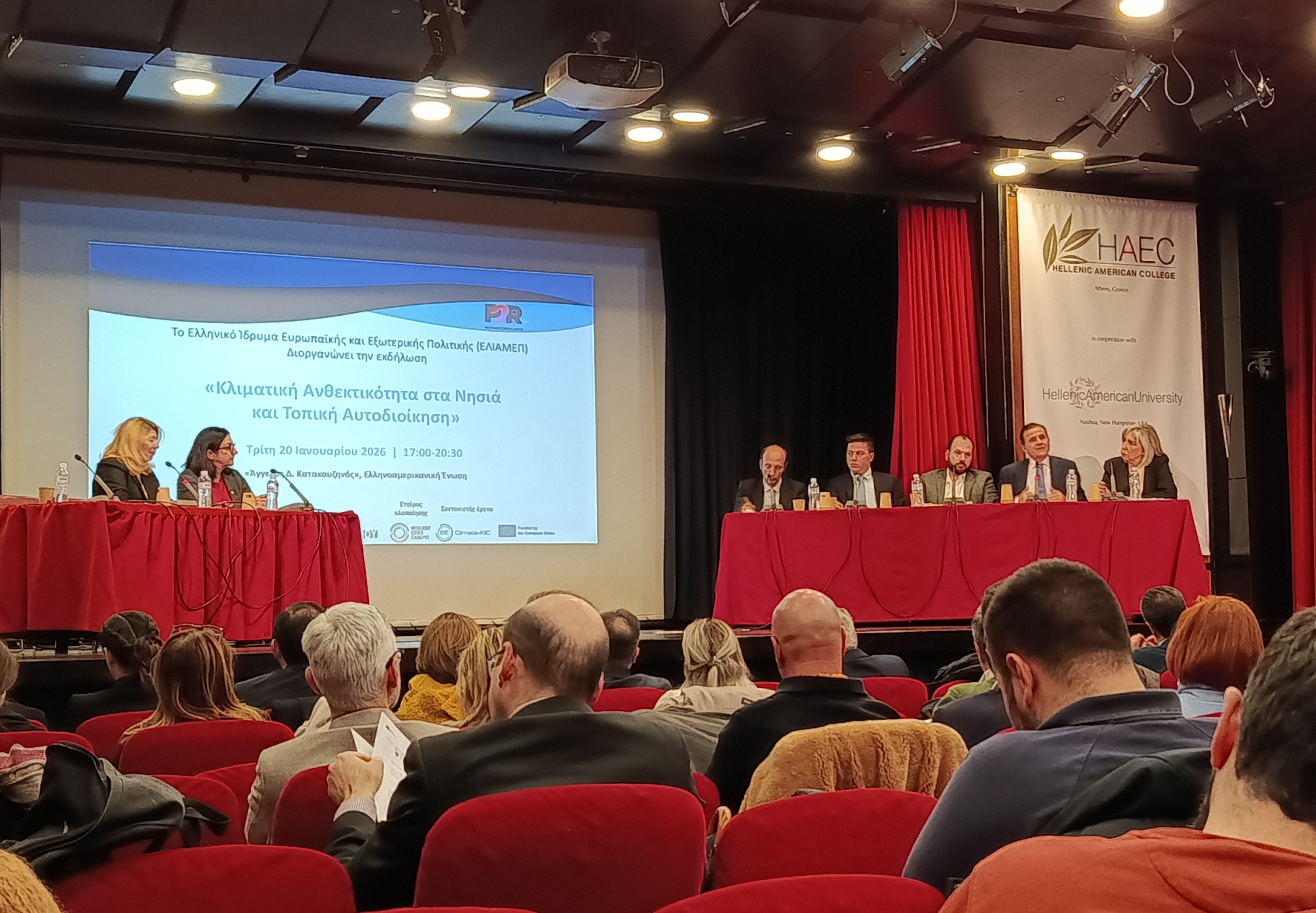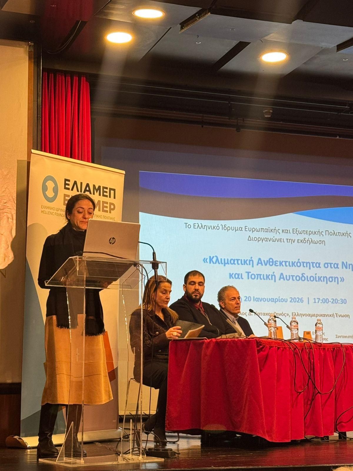 Με επίκεντρο τις προκλήσεις και τις προοπτικές της ανθεκτικότητας στα ελληνικά νησιά, πραγματοποιήθηκε με επιτυχία από το ΕΛΙΑΜΕΠ, την Τρίτη 20 Ιανουαρίου στην Ελληνοαμερικανική Ένωση το συνέδριο με τίτλο «Κλιματική Ανθεκτικότητα στα Νησιά και Τοπική Αυτοδιοίκηση», αναδεικνύοντας τον καθοριστικό ρόλο της Τοπικής Αυτοδιοίκησης στην αντιμετώπιση των επιπτώσεων της κλιματικής αλλαγής. Το συνέδριο έλαβε χώρα στο πλαίσιο του προγράμματος Pathways2Resilience (P2R) - Έργο ‘SMILE – Ενίσχυση της ανθεκτικότητας μικρών και μεσαίων νησιών με έμφαση στην Ιθάκη και τη Σκιάθο’ το οποίο υλοποιείται από τους εταίρους: Κόμβος Κλιματικής Αλλαγής και ΕΛΙΑΜΕΠ με την συμμετοχή των Δήμων Ιθάκης και Σκιάθου, και την υποστήριξη του Resilient Cities Catalyst.